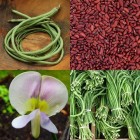 Vigna unguiculata ssp. Sesquipedalis (Engels: Asparagus of Yardlong Bean) Deze groene, lange Kousenband (60-70 cm) is bijzonder populair in tropische landen! Niet in het minst omdat de plant tegen veel warmte kan. Bij ons lukt de teelt redelijk buiten, maar je hebt een zonnige zomer nodig, in de kas gaat het beter. De peulzetting is vrij laat omdat het een korte-dag-plant is. Kousenband is heerlijk in allerlei wok-gerechten, ze worden in stukjes van ongeveer 5 cm gesneden. We verkopen een bruin-rood-zadig en zwartzadig ras, de voorkeur is per klant verschillend. Dit is |