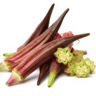 Abelmoschus esculentus (Engels: Okra, Lady's Finger) Deze prachtige, roodgenerfde plant geeft middelgrote, rode vruchten. Een mooie kleurafwisseling voor dezelfde malse smaak. Jong oogsten geeft de lekkerste vruchten. De sierlijke wit met roze bloemen en het rood-groene blad zijn overigens ook eetbaar. (Over)rijpe vruchten geven eetbare zaden. |