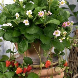 De mooie en tamelijk groeikrachtige, donkergroenbladige planten geven overvloedig appelbloesem kleurige bloemen en aromatisch fruit gedurende de gehele zomer, goed doordragend dus. De grote bloemen op lange bloemstelen met een aantrekkelijke appelbloesem bloemkleur maken 'Roman' en 'Gasana' tot een sierlijke potplant, waar je ook nog lekker van kan smullen! ZaaimethodeZaai is mogelijk vanaf begin januari tot aan eind maart voor vruchten hetzelfde jaar en van april-juli voor oogst het jaar erna; zaai bij temperatuur 22°C (20-25̊C). Zaaimedium: cocopeat met zilverzand, het bovenste laagje zeven met de keukenzeef om extra fijne grond te krijgen. Na het verspreiden van de fijne zaden, deze licht aandrukken en een zeer dun laagje voornoemde zaaigrond over het zaaisel zeven. Vochtig houden d.m.v. water nevelen, niet te nat en niet in de zon zetten. Als na 4 weken nog geen kieming te zien is, mag het zaaibakje 1 dag in de koelkast, vervolgens weer op 22̊C. Verspeen de zaailingen wanneer het eerste echte blad verschenen is (meestal na 4-6 weken). Hard de planten voldoende af voordat je ze in tuin of bakken plant. Regelmatige bemesting is noodzakelijk maar overbemesting is schadelijk! Leveringsmaandenhet gehele jaar