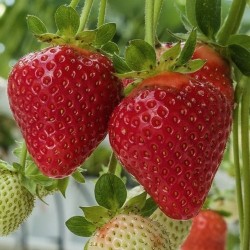Dit doordragende ras gedijt zelfs goed onder duurzame LED belichting en produceert hierbij mooie, stevige en goed houdbare vruchten! Vanuit het gezonde uitgangsmateriaal groeit de plant uit tot een sterk en vitaal gewas onder LED. Ook de vruchten die geproduceerd worden zijn mooi, stevig, uniform én bovenal: heel erg lekker! Het aardbei ras 'Soraya' heeft zich ook reeds in de zomerkasteelt bewezen, het ras is dus geschikt voor jaarrond teelt. 'Soraya' is een meisjesnaam van Perzische oorsprong. 'Soraya' verwijst naar het Zevengesternte en betekent ook wel 'juweel'. Aardbei 'Soraya' schittert dan ook als een juweel in ons assortiment. ZaaimethodeZaai is mogelijk vanaf begin januari tot aan eind maart voor vruchten hetzelfde jaar en van april-juli voor oogst het jaar erna; zaai bij temperatuur 22°C (20-25̊C). Zaaimedium: cocopeat met zilverzand, het bovenste laagje zeven met de keukenzeef om extra fijne grond te krijgen. Na het verspreiden van de fijne zaden, deze licht aandrukken en een zeer dun laagje voornoemde zaaigrond over het zaaisel zeven. Vochtig houden d.m.v. water nevelen, niet te nat en niet in de zon zetten. Als na 4 weken nog geen kieming te zien is, mag het zaaibakje 1 dag in de koelkast, vervolgens weer op 22̊C. Verspeen de zaailingen wanneer het eerste echte blad verschenen is (meestal na 4-6 weken). Hard de planten voldoende af voordat je ze in tuin of bakken plant. Regelmatige bemesting is noodzakelijk maar overbemesting is schadelijk! Leveringsmaandenhet gehele jaar