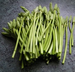 Na enkele jaren geduldige teelt kunnen we sinds 2012 gaan oogsten van deze onbekende en exclusieve groentesoort. De bloemstengels worden rauw in de knop geoogst en klaargemaakt als een heerlijke asperge met een stevige, “wilde” smaak. Maak een productieveldje op een zonnige tot halfbeschaduwde plek, humus- en kalkrijk en oogst ze jarenlang: de planten zijn zeer winterhard. Ze hebben op zijn minst graag wat onderbegroeiing, gras is ook al goed. Vroeger groeide deze telg van de vogelmelkfamilie uitbundig rond de stad Bath in Engeland, maar daar heeft men te gretig geoogst... In de berggebieden van Frankrijk en Spanje (Pyreneeën) tref je ze nog aan en worden aldaar door de bevolking geoogst en op de markt gebracht. De Fransman noemt deze verrukkelijke groente ook wel Asperge des Bois omdat ze in lichte bossen het meest met rust gelaten worden en dus daar nog voorkomen. Als je eens wat bloemen laat doorgroeien, geniet dan van bloemstengel van 40-100 cm hoog, aan het eind gesierd met bloemtrossen van 30-50 cm groot. De stervormige bloemetjes (mei-juli) zijn crèmewit en blijven na de bloei geopend om geleidelijk af te rijpen in fraaie doosvruchten.