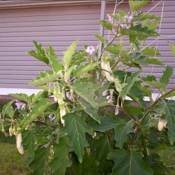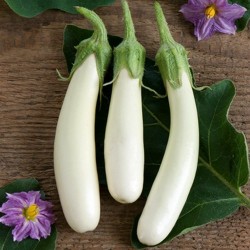 De planten van deze fraaie, slanke, witte aubergine blijft tamelijk compact. Hierdoor zal de oogst redelijk vroeg zijn en ook buiten lukken. Probeer ze ook eens in een grote pot te telen! Het beste oogststadium is als de vruchten 8-10 cm lang en 2-3 cm dik zijn.