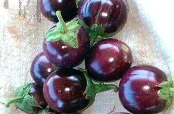 Uit Thailand en Zuid-Vietnam komt deze nieuwe “één-happer”, een overvloedige oogst geeft de plant met kleine, ronde vruchtjes van 25-30 g. De kleur is dieppaars met wat lichte streepjes. In de Oosterse keuken worden ze rauw gegeten met een chilisaus (bijv. Nam Prik Pao) of ze worden in kerriesaus geroerbakt. We houden ons aanbevolen voor mooie foto’s van vruchtjes en plant!