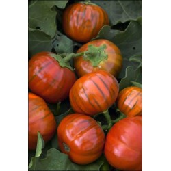 Van oorsprong Oost-Afrikaanse soort met latere bron in Turkije. De oranjerode vruchtjes zijn 4-5 cm doorsnee en zijn vrij rond met lichte, groene ribben. De 150 cm hoge planten (kas) dragen zeer rijk! In de Thaise keuken eet men vooral de onrijpe vruchten. Het blad wordt als groente gegeten.
