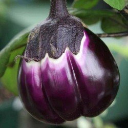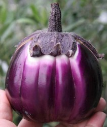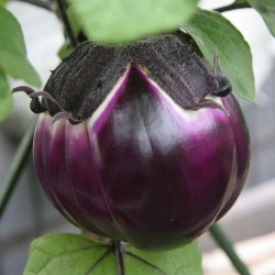 Een historische lekkernij! Dit oude ras geeft bolronde, iets geribde vruchten die via wit naar een diep lavendellila kleur afrijpen. Jong geoogst is de schil het zachtst. Het smakelijke vruchtvlees is compact van textuur. Er bevinden zich weinig zaden in de vruchten. Reken op 8-10 vruchten per plant, buitenteelt heeft goede kansen.