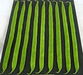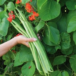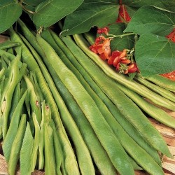 Hiermee haalt u een echte showboon in huis, de Engelsen noemen dit ras de "Exhibitor's Runner Bean" vanwege de record-peullengte van 40-50 cm! Daarbij hoort natuurlijk ook een recordbreedte van bijna 2,5cm. Laat er eens een paar doorgroeien om een record op uw tuin te vestigen…! Voor de rest: jong plukken geeft de meest malse byte. Roodbloeiend, rood met zwarte zaden.