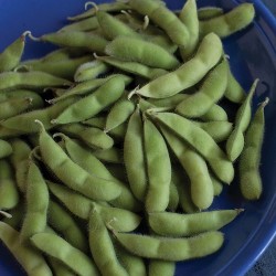 Wie kent de naam niet van deze zeer voedzame en eiwitrijke peulvrucht!? Leuk om eens te telen: de zaden kunnen rijp en onrijp worden gegeten. Dit ras geeft een grote oogst aan stevige, krachtige planten. De meeste peulen vormen 3 zaden, die vrij gemakkelijk te pellen zijn, zeker na kort blancheren. In Japan worden deze gepelde boontjes “Edamame” genoemd.