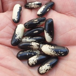 Dit zeldzame lage (niet klimmende) boontje is uit de vergetelheid gered door enthousiaste bonenverzamelaars! Het Eksterboontje is een droogboontje en een naaldboontje in één. Zeer jong geplukt oogst je een mals en verfijnd naaldboontje met een heerlijke bite. Verder gerijpt kan je de peulen doppen of dorsen, zodat de fraaie droge boontjes eruit komen: half zwart en half wit met zwarte spikkels. Deze smaken heerlijk met een zacht “creamy” mondgevoel. De groei is gezond en de oogst zeer groot! In Frankrijk was dit boontje al rond 1900 bekend onder de naam ‘Superlative’ (dat zegt wel iets...) en de Engelsen houden het op Magpie (=Ekster).