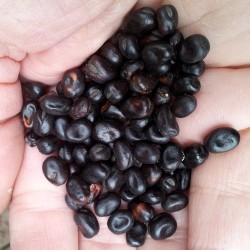 Duivenbonen zijn oeroude bonen, die al in 6000 v. Chr. werden gegeten (wie weet voor hoelang al). We zouden ze dus gerust Adamsbonen kunnen noemen...! De groente kwam in ons land door de Romeinen en heeft de hele Middeleeuwen op zowel mensen- als dierenmenulijst gestaan. Het Cruydt-Boek van Dodoens (1644) noemt de “Kleyne Boonkens” of  “Zeeuwsche Boonkens”. Dit kleinste familielid van de tuinboon is zo groot als bruine bonen en vrij rond van vorm. Deze variëteit is violet tot donkerrood van kleur en is een oud Fins ras, waarvan de oorsprong ons niet bekend is. Er bestaan ook lichtbruine, witte, groene en zwarte rassen. De smaak is die van een verfijnde tuinboon, maar door de kleine afmeting is het mondgevoel uniek. Menig moderne tuinboon is jaloers op het aroma! Zaai ze flink vroeg: februari-maart, ze kunnen enkele graden vorst verdragen en kunnen i.v.m. vogelvraat (duiven zijn er gek op) het beste voorgezaaid worden of anders 5 cm diep zaaien. De oogst kan vers (veel werk maar erg lekker) of gedroogd plaatsvinden. In Groningen werd vroeger van deze bonen de originele "Mollebonen" klaargemaakt, tegenwoordig gebruikt men daar de grotere paardebonen of tuinbonen voor.