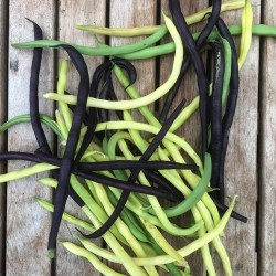 Heerlijk mals en van onderaf aan al boontjes te oogsten! Een van onze Belgische kwekers mengt en kruist de nieuwere types groene, paarse, rode en gele (boter) slaboontjes met als doel: malsheid en hoge productie! Wel regelmatig oogsten om de planten aan de bloei te houden…
