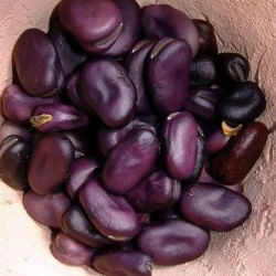 Deze (nog) zeer zeldzame, Russische tuinboon heeft dieppurperen zaden in verse vorm en bijna zwarte zaden in gedroogde toestand. De planten zijn zeer koubestendig en de smaak is als een smakelijke, traditionele tuinboon. Eet ze vers of na drogen, ook heerlijk als basis voor humus e.d.