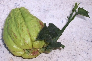 060400 CHAYOTE 'Pricky'ook wel genoemd: CITROENAARDAPPEL, KLIMAARDAPPEL, GUATILA, CHOUCHOU, CHUCHU, CHOKO, CHO-CHO, MIRLITON, CHRISTOPHINE, CIDRA, CENTINARJA, PIPINOLA, LABU SIAM (Engels: Spiny Chayote, Vegetable Pear)(Sechium edule) |