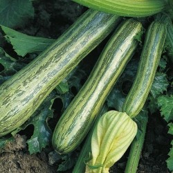 Een vroeg soort uit Italiaanse traditie, die (uiteraard jong geoogst) heerlijk mals is. Laten doorgroeien kan ook: dit soort heeft prachtige gele strepen op de donkergroene vruchten, die alleen maar fraaier gaan aftekenen. Als grote uitgegroeide vrucht is een courgette enkele maanden (voor de sier) houdbaar.