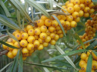 Eeuwenlang ondergewaardeerd maar nu eindelijk (voorgoed?) op de kaart gezet! Deze pionier van de duinen groeit eigenlijk op alle gronden, van nature echter vooral op kalkrijke grond. Zet een rijtje van 3-5 struiken, er zijn namelijk mannelijke en vrouwelijke planten nodig, die elkaar (door de wind) bestuiven. (Uit het zaad komen zowel mannelijke als vrouwelijke planten, je weet echter helaas niet welke dat zijn...) Na de onopvallende bloei ontstaan de (takkenvol met) bessen in oranjegele, crème of koraalrode kleur. Zowel bladeren, maar vooral de bessen zijn zeer gezond en bevatten veel meer vitaminen dan citrusvruchten zoals sinaasappelen! Maak er sap, elixer of jam van, niet te rijp plukken i.v.m. alcoholvorming.