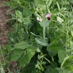 We ontvingen dit mengsel van 2 (gelijkende) rassen van Astrid Storm, zij had deze weer van SESAM in Zweden. De zaden moet je echt even onder de loep nemen: prachtig gemarmerde kleur, een klein, maar alleraardigst detail! Opvallend is de zeer gezonde groei, tot ongeveer 1 m hoogte, enige steun is dus handig. Na de fraaie 2-kleurige bloei (lichtroze met bruinrood) groeien de peulen met iets gekreukte, vrij fijne erwten. Ze smaken zeer goed en tamelijk zoet. Leuk om met elkaar dit mengsel in stand te houden...
