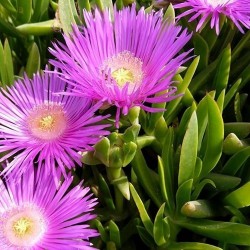 De hottentotvijg is een plant uit de ijskruidfamilie (Aizoaceae). De plant is ingevoerd vanuit Zuid-Afrika en is nu in veel Europese landen te vinden, vooral aan de kust. Verschillende verwante soorten komen ook in Europese kustgebieden voor. Het is een kruipende plant die zich flink kan uitspreiden. Zo worden kussens gevormd van 25-30 cm hoog. Ze komen voor op rotsen, kliffen en zandgrond en voorkomen erosie! Het 10 cm lange blad is heldergroen, succulent en driekantig. De fraaie roze (soms gele) bloemen rijpen af tot vlezige doosvruchtjes, die (mits geheel rijp) een lekkernij zijn: spannend slijmerig (als een oester) en zoetzuur. Je kan de vruchtjes ook drogen, meer info vind je hier: www.greenidiom.com Medicinaal wordt de plant aangewend tegen bacterieziekten en (wellicht) preventief tegen kanker. ZaaimethodeZaaien: jaarrond, gebruik cocopeat met zilverzand en zeef de bovenlaag met de keukenzeef zodat een extra fijn laagje ontstaat. Verdeel hier de zeer fijne zaadjes over en druk deze aan. Vochtig nevelen met lauw water en warm laten ontkiemen. Na opkomst zeer licht zetten. Leveringsmaandenhet gehele jaar