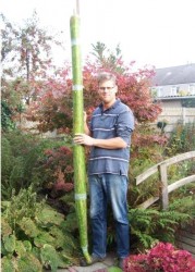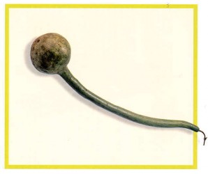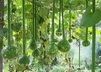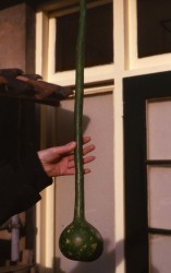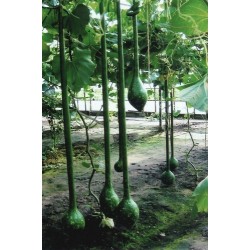 Deze slanke schoonheid heeft een bolvormig vruchtlichaam van 25 cm diameter en een lange slanke hals van wel 150-180 cm lang! Het Nederlands record stond in 2009 op 252 cm! Als de vrucht hangt wordt de hals extra lang. De plant rankt ijverig, meters lang met hartvormig, groengrijs blad.