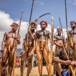 Naast een traditionele hoofdtooi zijn veel oorspronkelijke (mannelijke) bewoners van Nieuw- Guinea gewend om hun penis te tooien en bedekken met een gedroogde kalebas. Deze originele kledij wordt voornamelijk gedragen gedurende ceremonies.