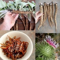 In Japan (Gobo), China (Niubang), Taiwan en Korea (Ueong) gaat men wat serieuzer met deze plant om en laat deze na het zaaien enkele maanden groeien om vervolgens de jonge wortels te oogsten, deze smaken zacht, zoet, iets pittig en heerlijk in salades. Je kan ze ook koken of bakken, je vindt heel veel toepassingen op internet. Behalve de niet-aantoonbare werking tegen haaruitval heeft Kliswortel wel veel bewezen geneeskrachtige werkingen, ik noem er enkele: bloedzuiverend, bacterie-onderdrukkend en goed voor de huid. Je vindt veel meer op o.a. de site van pfaf.org Wij bieden speciale rassen aan, die een goede kwaliteit wortels vormen. ZaaimethodeUitzaai maart tot juni. Het zaad eerst in water weken, daarna uitzaaien en bedekken met 1cm aarde. Plantafstand 25 à 30cm. Van wege diepe beworteling: de grond diep losmaken. Leveringsmaandenhet gehele jaar