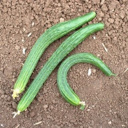 Lange (tot 50 cm) en slanke komkommer met de echte oorspronkelijke komkommersmaak! Iets zoet, iets pittig, tikkeltje zuur en sappig vruchtvlees. Snij de mooiste, kleine rondjes van deze lange vruchten! In Azië zie je dit ras nog veel op de markt en wordt zeer gewaardeerd voor de smaak. Hoe lang nog, nu ook daar de moderne hybriden doorbreken....?