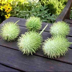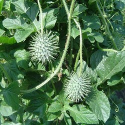 De klimmende of kruipende planten geven een overvloed van fraaie sierkomkommertjes met lange, zachte stekels, de vruchten lijken een beetje op die van de tamme kastanje. In Oost- en Zuid-Afrika is dit soortje inheems en meerjarig, door onze zachte winters blijven de planten hier ook wel eens over. Deze soort is echt alleen voor de sier en niet voor consumptie, super leuk voor decoratie!