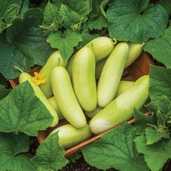 Snoepkomkommer met de zoetheid van honing! Een absolute topper voor wie van extra zoete snacks houdt. Vergeet de waterige supermarktkomkommer; de ‘Honey Plus’ doet zijn naam eer aan en smaakt bijna als een jonge meloen. De vruchten zijn prachtig om te zien: ze hebben een gladde, witgroene schil die zo dun is dat schillen absoluut zonde (en onnodig) is. Het vruchtvlees is stevig, knapperig en heeft een opvallende lichtgele gloed. Oogst ze jong, bij een lengte van 8-12 cm, voor de allerbeste smaakbeleving en om de plant aan te zetten tot een enorme productie. Regelmatig plukken bevordert de doorgroei; je kunt wel 20 tot 30 vruchten per plant verwachten! Deze groeikrachtige klimmer voelt zich het prettigst in de kas of een warme serre, maar op een beschut, zonnig plekje tegen een zuidmuur lukt het buiten ook prima. Geef ze een flink klimrek, want deze plant wil omhoog!