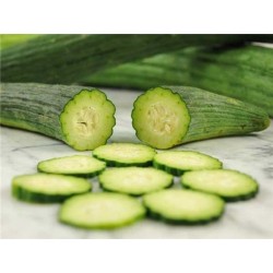 Meloenkomkommer (Flexuosus groep) Langwerpige, op komkommers lijkende vruchten met een stevige, frisse, maar wel meloenzoete smaakervaring. Wij hebben ze vanwege de vorm bij de komkommers ingedeeld. Dit oude, mediterrane ras geeft prachtige effen donkergroene vruchten met sierlijke diepe ribben in de vruchtlengte. Een onbekende, maar heerlijke groep meloenen met het uiterlijk en de ‘bite’ van komkommers. Ze hebben meer warmte nodig dan komkommers.Tot 70 cm vruchtlengte! Laat ze dus klimmen in de kas.