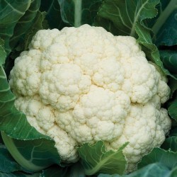 Bloemkool verlangt een voedzame, goed bewerkte en vochthoudende grond. Uitplanten op 50 cm. Wilt u eens een kwekers-topper in de tuin? Dit helderwitte, Amerikaanse topras (OP) groeit snel en betrouwbaar in 70-80 dagen (na planten) tot oogstbare bloemkool. Goed zelfdekkend, d.w.z. er groeit uit zichzelf blad over de kool, zodat deze wit blijft. Geschikt voor zomer- en herfstteelt omdat dit ras zowel tegen hitte als kou kan.