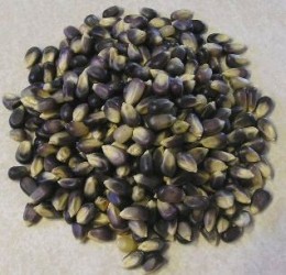 Deze prachtige staalblauwe maïs maakt kolven van ruim 20 cm lang en komt van oorsprong van de Indianen (Shaman is een soort medicijnman). In de VS is deze blauwe soort populair als grote gekleurde popcorn. Voor succesvol “poppen” moet de maïs voldoende hard uitgerijpt zijn, bij een slechte nazomer lukt dat wel eens niet in ons land. Oogstbaar na ongeveer 100 dagen als de korrels hard worden en daarna verder drogen. De zaden springen na verhitting open en geven dan een gezonde snack!