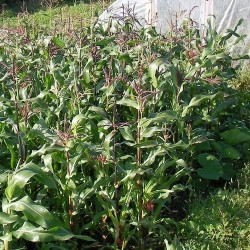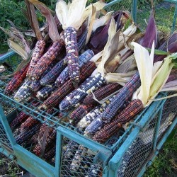 Deze prachtige bakmaïs komt door vroege rijping zeker tot wasdom in ons klimaat. Naast sierlijk zijn de kolven (van 15-17 cm lengte) een zeer voedzame basis voor maïsmeel, populair om te roosteren of om grutten van te koken. De planten zijn compact: 120-150 cm hoog.