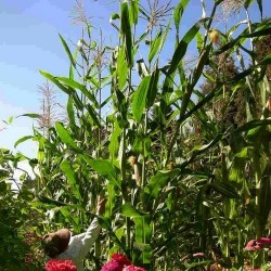 Een zeer oude en sierlijke, oorspronkelijke maïs uit Zuid-Amerika. Oorspronkelijk wit, maar door kruisingen in de 19e eeuw dieprood geteeld. Deze maïs is bijzonder groot, wordt nog steeds gebruikt om mee te koken, meel van te stampen en in zacht stadium zijn de kolven ook als (iets) zoete maïs te eten. De plant groeit krachtig en heeft smal blad en groenrode stengels: zet gerust een rijtje voor de sier neer!