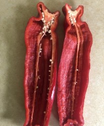 Langwerpige blokpaprika, die wel taps toeloopt, maar niet in een punt uitloopt. Deze dikwandige paprika’s zijn heerlijk zoet, dikwandig en groot! Het grappige is de deuk die bijna bovenin ontstaat, waardoor de vruchten op vogels (Kaketoe) lijken. Deze Franse paprika rijpt van groen naar donkerrood met bruinrode strepen.