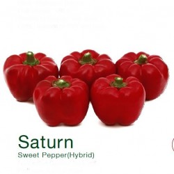 De meerhokkige vruchten hebben een grappige tomaatvorm, doordat ze breder dan hoog zijn (6,5x8 cm), vandaar de naam Tomaatpaprika. ‘Saturn’ is zeer dikwandig (0,65 cm) en geeft een grote oogst, een professioneel ras waardig! De groene vruchten rijpen naar donkerrood en wegen ongeveer 160 g per stuk. De professional doet er 115 dagen over: van zaaien tot 1e oogst.
