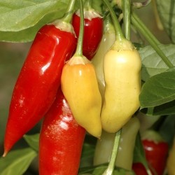 Een echte allrounder deze Chileense peper, want geschikt voor vele toepassingen. De plant wordt maximaal 90 cm hoog. De niet al te hete pepers worden zo'n 9 cm lang en hebben een duidelijke citroensmaak. De pepers verkleuren tijdens het rijpen van lichtgroen naar geel en worden uiteindelijk rood. Ze zijn het lekkerst als ze bijna rood worden. Een van de vroegste pepers! Populair in Italiaanse gerechten, salades, soepen, sauzen, roerbakschotels en natuurlijk in diverse Aziatische en Zuid-Amerikaanse gerechten. De plant en vooral ook de zijtakken hebben steun nodig omdat de grote en zware vruchten de takken anders doen breken.