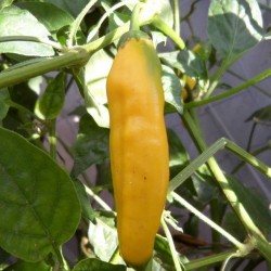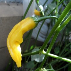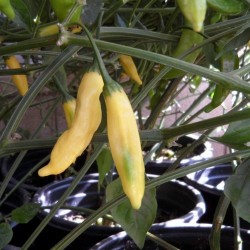 Deze meerjarige peper (vorstvrij overwinteren) kan in de kas flink groot worden, buiten kunnen ze beter af en toe gesnoeid worden. De beloning: een enorme oogst van lichtgele vruchten, vrij heet, met een zweem ananas-aroma. De vruchtjes rijpen van lichtgroen naar lichtgeel en zijn ongeveer 4-7 cm lang en 0,5 cm groot.