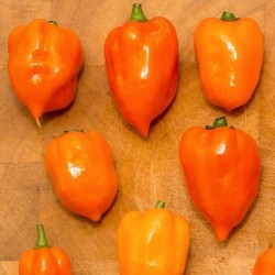 Zeer populair in Midden-Amerika! Een van de heetste Adjuma's (100.000-300.000 Scoville!). Deze helder oranje variëteit is iets langwerpig tot blokvormig of hartvormig. Tip: laat de vruchtjes tijdens de bereiding heel en haal ze achteraf weer uit het gerecht. De planten kunnen in een pot binnen overwinteren, snoei deze na de vruchtrijping terug voor nieuwe groei.