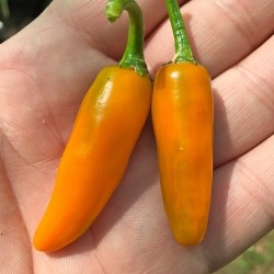 Deze Mexicaanse peper heeft het vermogen om sauzen sterk geel te kleuren. Een mooi pepertje van 5-8 cm lang en tot 2,5 cm breed. Bij volledige rijpheid neigen ze naar oranje. De vruchten hebben een dunne wand, ze zijn daarom prima geschikt om te drogen. Dit mildhete ras heeft een licht citroenachtig aroma. Goed te gebruiken in soepen, sauzen en salades.