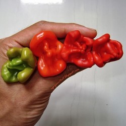 Rijkdragende, 1-1,2 m hoge planten, afrijpend van groen via oranje naar rood. Dit ras komt van oorspong uit Barbados en is tamelijk mild, de rode vruchten (rijp) zijn licht heet en fruitig van smaak! Met enige fantasie is er de kroon van een bisschop uit te herkennen, de 2e naam: ‘Christmas Bell’ (klokjes) klopt wellicht beter…