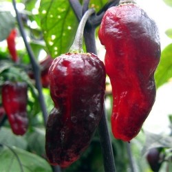 De flink groeiende planten vormen donkerpaarse stengels en paarse tot donkerrode vruchten, die bijna zwart afrijpen. Kleurt je saus prachtig diep van kleur en geeft een mooi aards aroma.
