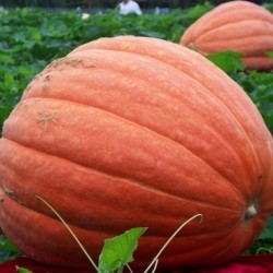 Pompoenen kunnen probleemloos buiten worden geteeld. De groeitoppen kunnen regelmatig worden gesnoeid en zijn eetbaar! Oogsten tijdens droog weer geeft de beste bewaarbaarheid. Alle pompoenen zijn eetbaar! Bij sommige soorten vermelden we de synoniemen, dat zijn de namen waaronder het soort ook bekend is. Bij andere soorten vermelden we zeer gelijkende soorten, heeft u duidelijk voorkeur voor een van die bij elkaar vermelde soorten, geef dat dan duidelijk aan. Een oranje reuzenpompoen met iets afgeplat ronde vorm en ondiepe ribben of plooien. ‘Big Max’ is fraai rozerood van kleur, heeft een harde vruchthuid, goudgeel vruchtvlees en is zeer geliefd in Amerika voor het maken van (lang houdbare) “Halloween”-maskers of lantaarns. Ze wegen zonder extra vertroeteling en kweekijver rond de 50 kg. Uiteraard worden ook met dit ras wedstrijden georganiseerd, als je erg je best doet kan je het Europese record van bijna 600 kg evenaren!