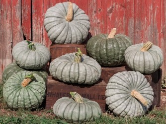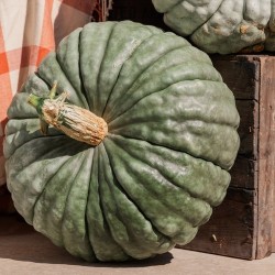 We zijn erg blij dat we het mooie sortiment van Outstanding Seed Company kunnen verkopen. Dit Amerikaanse bedrijf uit Beaver Falls (Pennsylvania) is gespecialiseerd in het kweken en verbeteren (door traditionele veredeling) van pompoenen. Ze letten daarbij op verbetering van kleur, vorm, smaak, ziekteresistentie, oogsttijdstip, oogstgrootte en bewaarbaarheid. Fijn om rechtstreeks bij de bron te kunnen kopen! Dit type komt van oorsprong uit Australiƫ en beleeft nu een spectaculaire Amerikaanse verbetering in smaak en oogst...! De vruchten zijn afgeplat en scherp gegroefd, grijs tot blauwgrijs van kleur met een ruwe textuur. Het dieporanje vruchtvlees is zoet, droog en van uitstekende kwaliteit en smaak. De gemiddelde diameter is ruim 30 cm met een hoogte van 18-20 cm. Ze wegen 10-15 kg, de rankende planten hebben een flinke groeikracht.