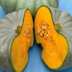 De bekendste smaakmaker in Nieuw-Zeeland! Deze blauwgrijze pompoen is platrond, met een afmeting van ongeveer 30x20 cm en is zeer lang bewaarbaar. Aan de onderzijde bevindt zich meestal een typerende ronde krans, de “Crown”. Het oranjegele vruchtvlees ruikt al heerlijk fris en smaakt voortreffelijk!