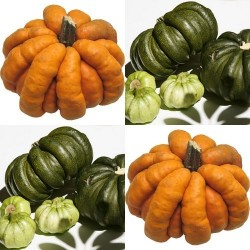 Een prachtige vrucht met zeer oude historie! We vinden deze Zuid-Mexicaanse pompoen als afbeelding op oude Maya potterij. Prachtige brede ribben en bobbels geven de vrucht een exotisch uiterlijk. Oogst ze jong voor een heerlijk, bolronde courgette (guicoyitos) of laat enkele vruchten uitgroeien tot ware sieraden voor de herfsttafel. Rijpe vruchten zijn uiteraard eetbaar als pompoenen met een frisse, iets zoete smaak.