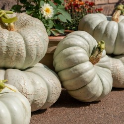 We zijn erg blij dat we het mooie sortiment van Outstanding Seed Company kunnen verkopen. Dit Amerikaanse bedrijf uit Beaver Falls (Pennsylvania) is gespecialiseerd in het kweken en verbeteren (door traditionele veredeling) van pompoenen. Ze letten daarbij op verbetering van kleur, vorm, smaak, ziekteresistentie, oogsttijdstip, oogstgrootte en bewaarbaarheid. Fijn om rechtstreeks bij de bron te kunnen kopen! Een Australisch type, weer teruggebracht naar zijn roots: Noord-Amerika. Daar is de frisse smaak behouden en de ziekteresistentie (door slimme - maar natuurlijke - veredeling) flink toegenomen, waardoor de planten zeer lang door nog hun heerlijke vruchten geven. De planten geven een grote oogst van platronde vruchten (10-12 kg zwaar, 30 cm in doorsnee en 16 cm hoog), de planten ranken ijverig en de vruchten zijn gemakkelijk enkele maanden te bewaren.