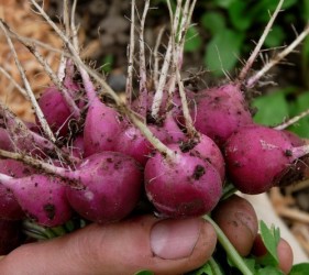 Een sieraad voor de salade, een heerlijke prikkeling op de tong en een ramp voor de zaadteler… Dat laatste omdat deze soort heel lastig tot zaadvorming komt. (Maar ja dat is onze zorg, nietwaar?) Opvallend is de paarspurperen kleur, maar dat had u aan de naam al gezien(?)
