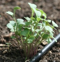 ±8-10 cm hoog is. Als Rucola langzaam groeit door warmte, zon en niet te veel water, dan wordt de smaak veel sterker. Dat heeft slimme supermarkten ertoe geïnspireerd om deze “Wasabi-Rucola” te noemen. De “echte” vind je bij nr. 242120. Let op, als je de langzame teelt overdrijft, dan schieten de plantjes in de bloei. ZaaimethodeZaaien: maart-september buiten, steeds een portie zaaien geeft voortdurend verse oogst. Ze kunnen wat kou verdragen. In de zomer vochtig houden om snel doorschieten te voorkomen. Binnen kan jaarrond worden gezaaid. Dit soort wordt ook geteeld als microgroente (voor het jonge plantje met kiemblad of eerste gewone blad). Microgroente wordt op vochthoudend materiaal gekweekt (keukenrol, watten, aarde). Voor de ontkieming donker en warm, na de ontkieming licht en koeler. Leveringsmaandenhet gehele jaar Gelijke productenDit product kent meer toepassingen en komt daarom in verschillende groepen van onze website voor. Dit product is ook te vinden als