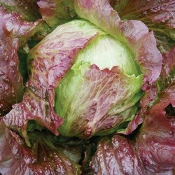 Extra fraai is de rozerode blos op deze ijssla, de kleur is intenser naarmate er meer zon schijnt. Speciaal voor de zomer en de vroege herfst geselecteerd met grote kroppen, die niet snel doorschieten. Resistent tegen diverse meeldauwsoorten.
