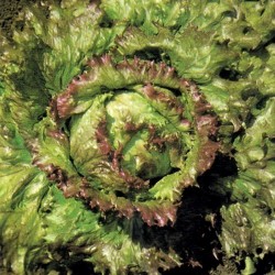 Deze fraaie krulsla geeft malse bladeren, gebobbeld en gekarteld van vorm, in het centrum lichtgroen en naar de randen bruinrood van kleur. Geef je de planten onderling meer ruimte, dan vormt zich een mals kropje.