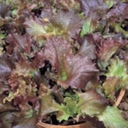 Een mooie en lekker zachte pluksla met diep bruinrode vlekken op frisgroen blad. Zwartzadig.
