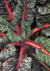 De stengels en nerven zijn diep appeltjesrood, een sierlijke snijbiet die ook nog eens heel lekker is! Ook geschikt om in een schaaltje met aarde als bietkers te eten. Zaai ze als het al wat warmer wordt anders is er enige kans op doorschieten.